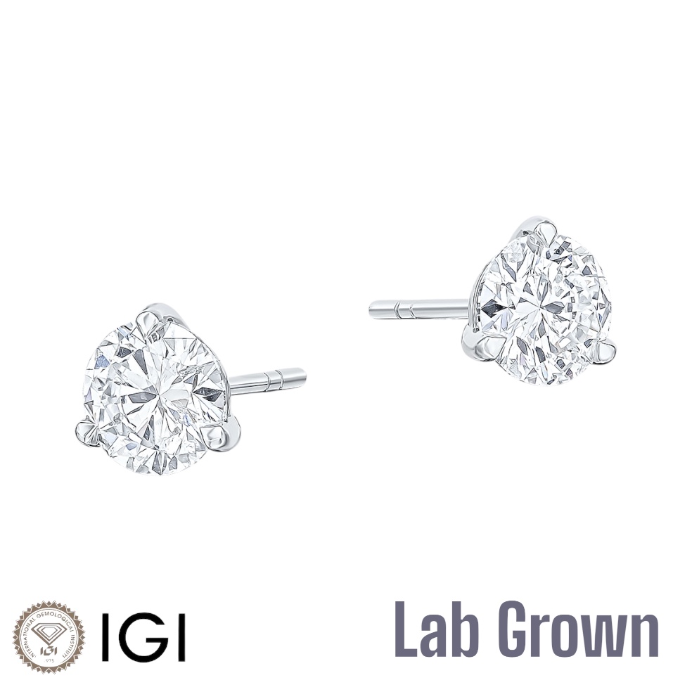 18ct White Gold Brilliant Cut Lab Grown Diamond Three Claw Set Stud Earrings. Total Diamond Weight 2.00ct. Both diamonds IGI graded E colour / VVS2 clarity.